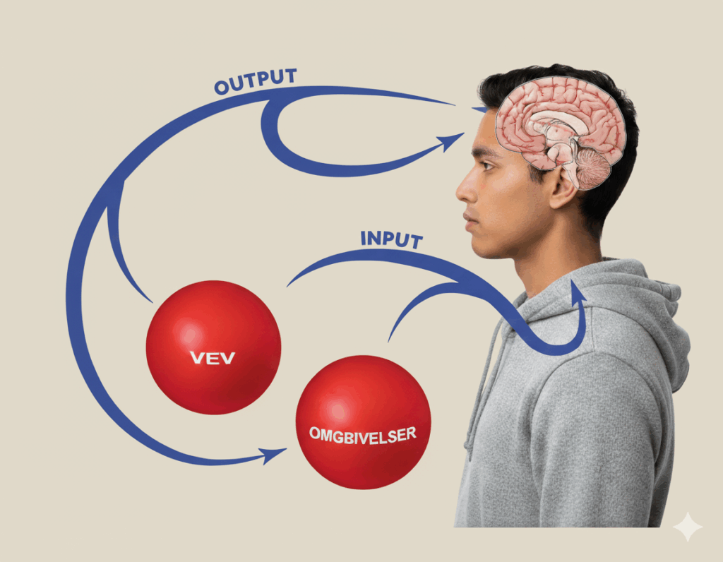 Hjernen legger to og to sammen og får output: Fire. Men iblant legger hjernen to og to sammen og får fem… Eller iblant legger hjernen to og to sammen og får tre – f.eks er det mange rapporter fra australske surfere som har sittet over surfebrettene sine og kjent det som at de har skubbet borti et skjær, for så å se ned, og oppdaget at en hai har bitt av benet deres. Smerten kommer først når de oppdager hva som har skjedd. [4]